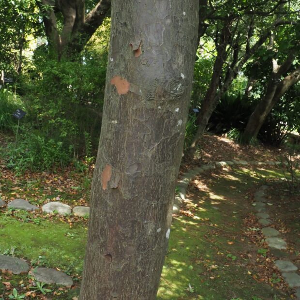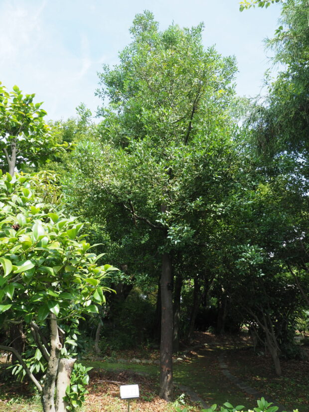 高さ20m、 直径50~60cmにもなります。 多数の枝が上にむかってのび、 上部の枝や葉が広がった樹形をつくります。