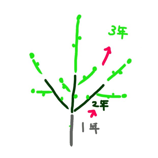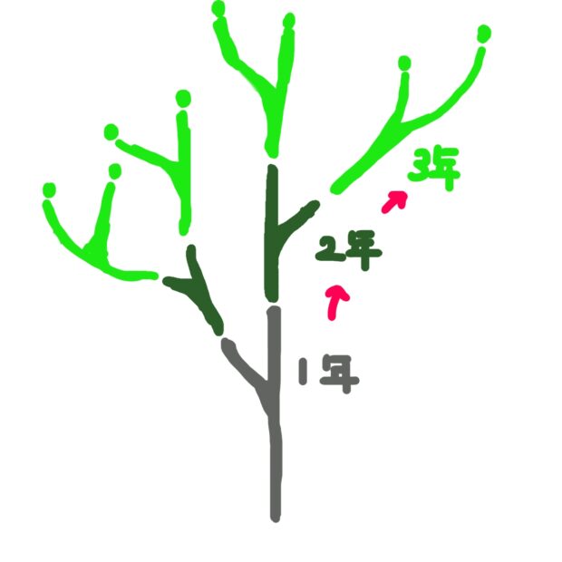 ・枝の伸び方も個性的。 他の木は枝分かれは来年に繰り越す木が多いですが、 クロモジは枝分かれまでなめらかに伸びて中途半端に1年のくぎりをします。 「区切りの良いところで休んでね!」と言ったとしたら、 「ここでやめるんかーい。 」という感じ。 おかげで冬芽はほぼ枝の先端にある(ある意味そろってはいる)面白い木です!