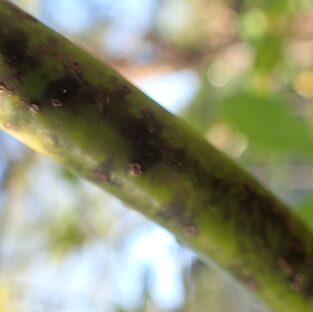 春から夏に枝分かれまで一気に伸ばすので、 枝分かれ部分がなめらかです。 1年の枝の境目も中途半端なところにあります。 枝を折るとさわやかな良い香りがします。