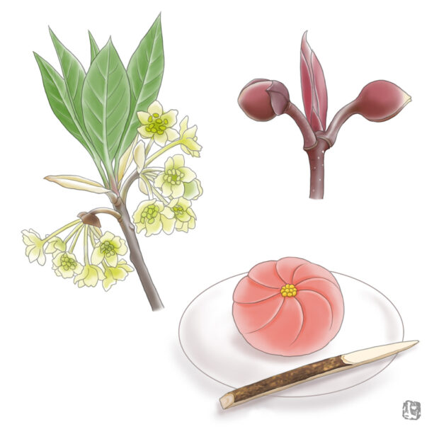 枝葉に香りがあるので香料をとったり、 クロモジ茶やクロモジ酒などにもします。 クロモジの枝のツマヨウジは高級品で、 上品な和菓子にそえられます。 昔は枝を歯ブラシ代わりにしていたそうです。