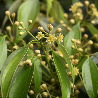 晩春から初夏、 クリーム色の小さな花を咲かせます。 クスノキの花を大きくしたような花です。