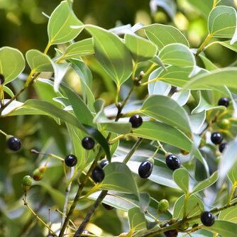 晩秋から初冬、 黒い実がなります。 実もクスノキも似ていますが、 クスノキが丸顔ら、 ニッケイは面長な形をしています。