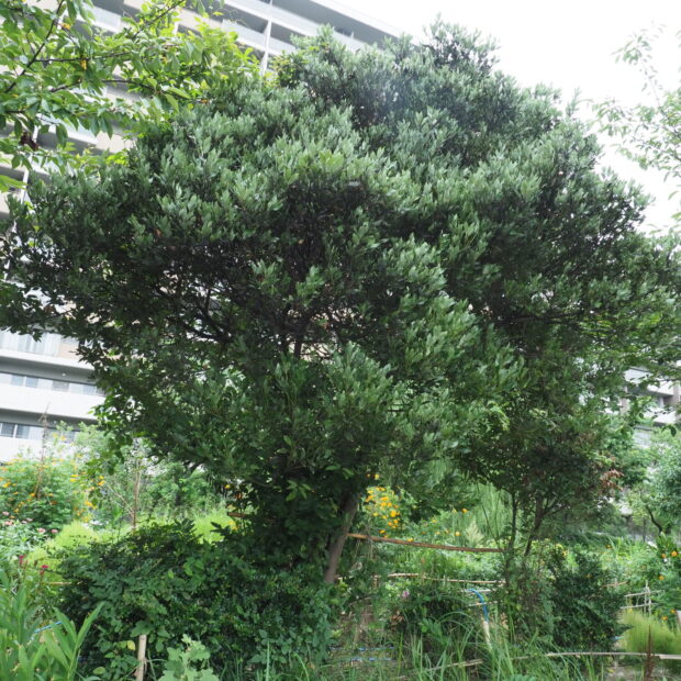 10m以上になる木。 日当たりの良い場所ではこんもりとした樹形になります。