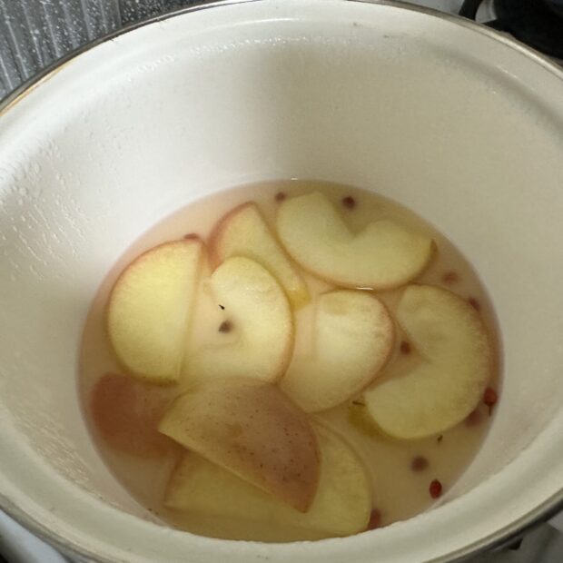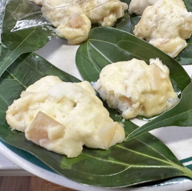 ニッケイのリンゴ蒸しパン。 ホットケーキミックスはバニラの香りが強いのでニッケイの香りが感じられなくなります。 バニラを入れない蒸しパンのレシピで作りましょう。 蒸している最中とてもよい香りがします。 リンゴがなければ、 干しブドウをのせても良いし、 中にあんこを入れてもおいしいです。