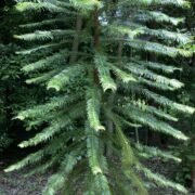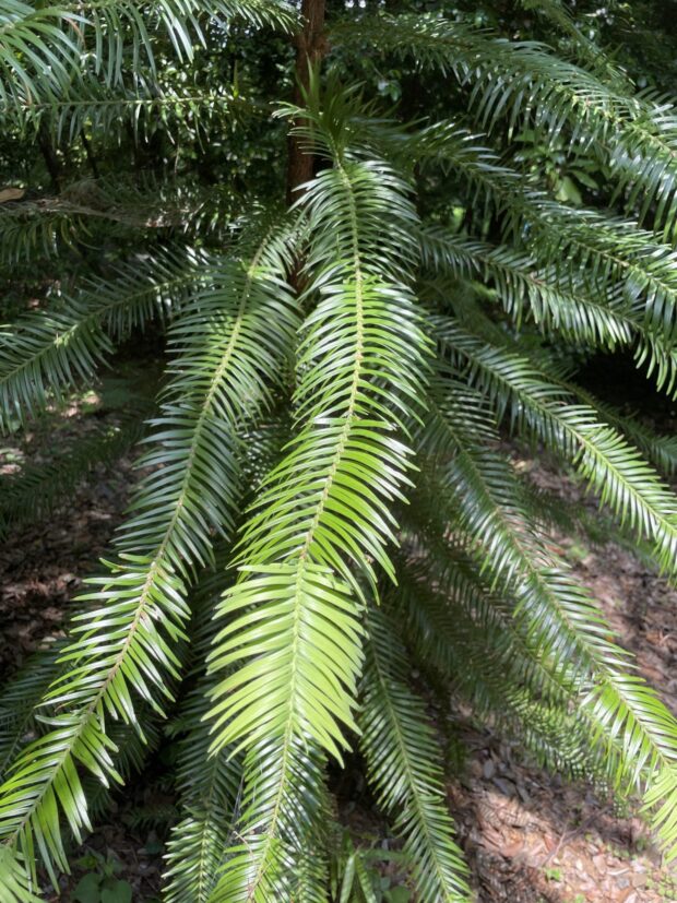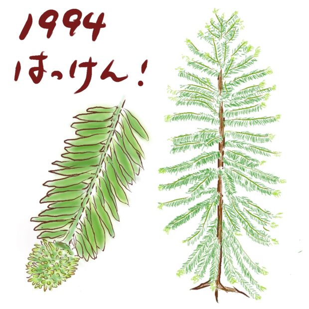 1994年、 オーストラリアのシドニーの郊外で発見されて話題になった植物です。 裸子植物の新しい発見はとても珍しいので、 20世紀最大の植物発見ともいわれています。 2億年前から絶滅せずに残ったと考えられていることからジュラシック・ツリーとも呼ばれます。
