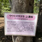 古代、 シカの肩甲骨の裏に溝を彫り、 ウワミズザクラの樹皮で焼き、 溝の周辺に生じる割れ目を見て吉凶を占ったといいます。 この裏溝が転じて「上溝桜(ウワミゾザクラ)」となり、 それが転じてウワミズザクラと呼ぶようになったと言われています。
