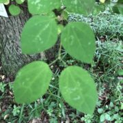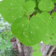 丸みのある葉っぱが向かい合ってつきます。 ハート型の葉が多いですが、 色んな形があります。 春の新緑、 秋の黄葉がとてもきれいです。 若葉や落ち葉はキャラメルのような甘い香りがします。