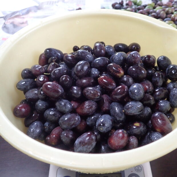 手作りオリーブオイルは、 市販のオリーブオイルとは全く違い、 青りんごのような香りがします。 豆腐やサラダにかけてもおいしいし、 手にぬっても良いです。 まず晩秋から初冬に実を鳥に取られる前に収穫しないといけません。