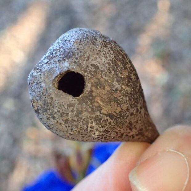 大きな虫こぶは穴があき、 そこを吹くとひょんとなるから、 ヒョンノキとも呼ばれています。 アブラムシが出て行った後の虫こぶを見つけ、 ゴミをとりのぞいて、 吹いてみましょう。