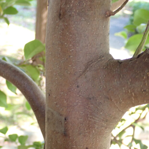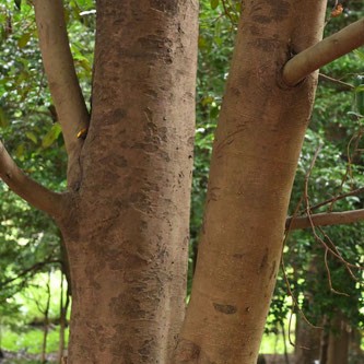 若い樹皮はなめらかで、 大木になると鱗のようにはがれます。