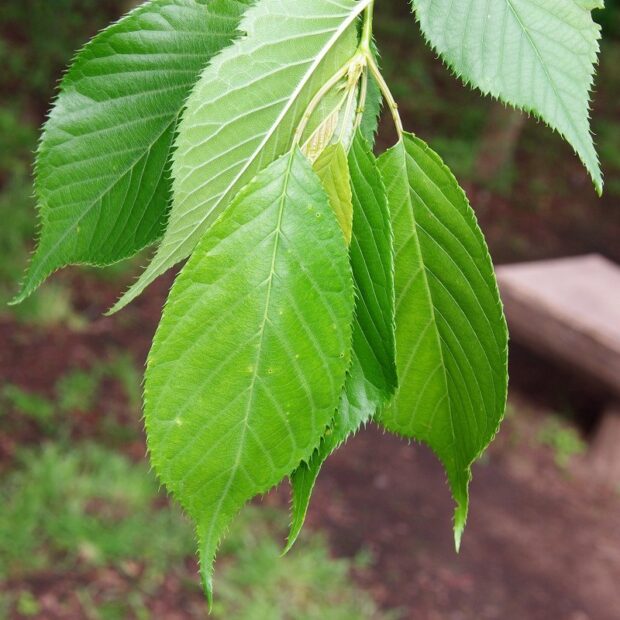 花が咲き揃ったころ黄緑色の若葉が伸び始めます。
