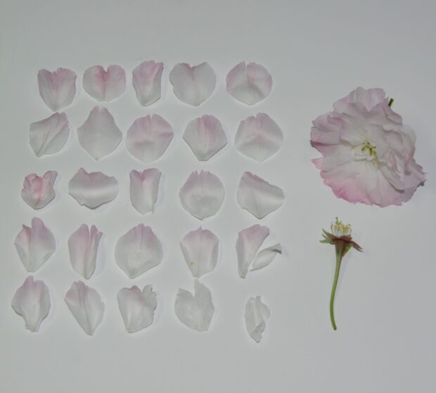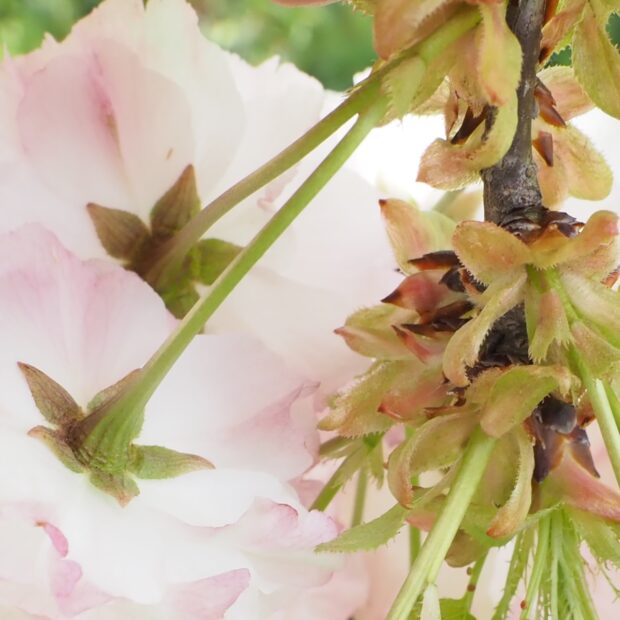 ショウゲツは実がならず増やすには人が接ぎ木で苗木を作ります。 ヤエザクラの中で最も優美な花が咲く品種のひとつです。