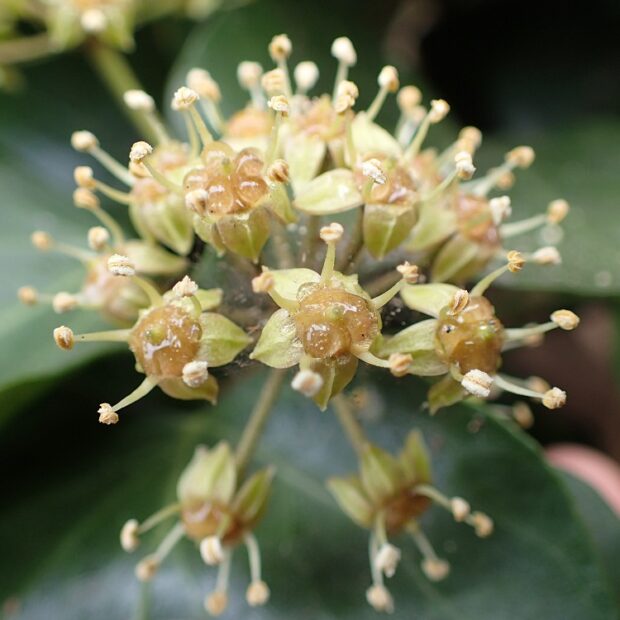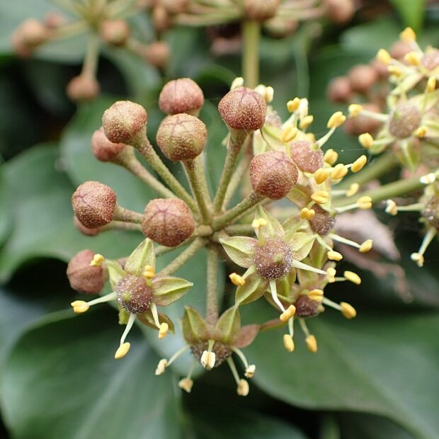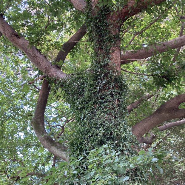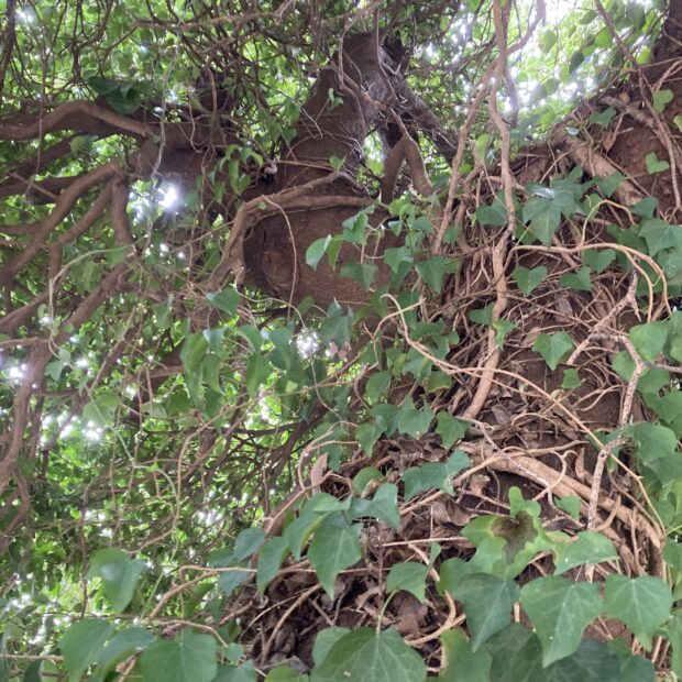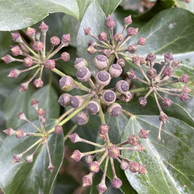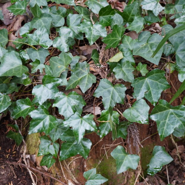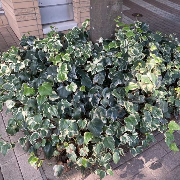 日陰でも一年中葉を茂らせているので、 キヅタの仲間のセイヨウキヅタやカナリーキヅタの栽培品種が街の中にたくさん植えられています。