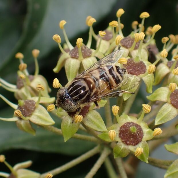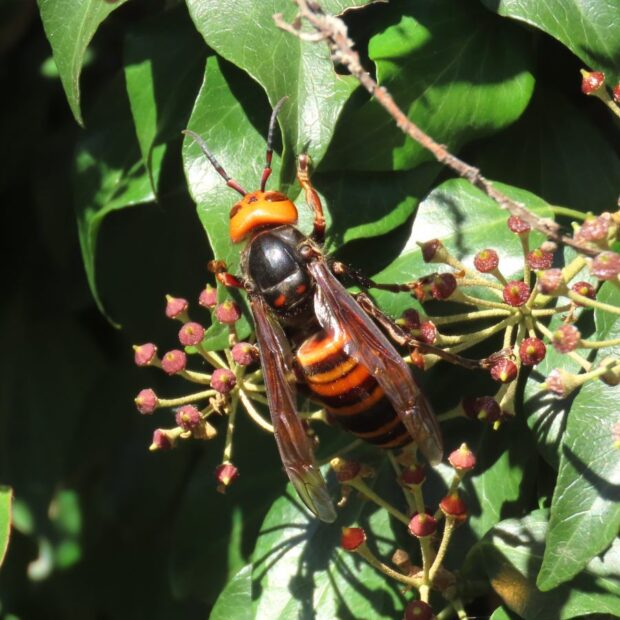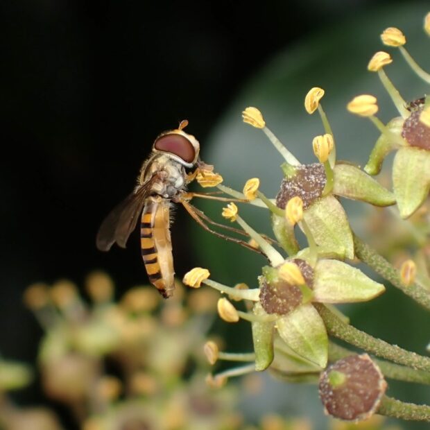 晩秋に咲く花には蜜がいっぱいあり、 虫たちのレストラン。 スズメバチもやって来ますので注意してください。