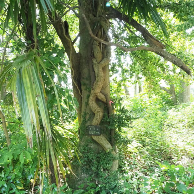 大きな木にしっかりと巻き付いて生きていても、 気根から栄養を奪い取ったりしない、 見かけによらず優しい子です。 幹で締め付けて枯らしてしまおうなんて、 そんなつもりはなく、 もじゃもじゃの気根を出してただ寄り添っているだけです。