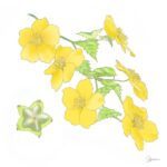 色鉛筆や絵の具などの「やまぶきいろ」は、 ヤマブキの花の色からきています。 赤みがかった黄色が「山吹色」です。 黄金の色に似ているため、 江戸時代には金貨を「山吹色」と呼ぶこともありました。