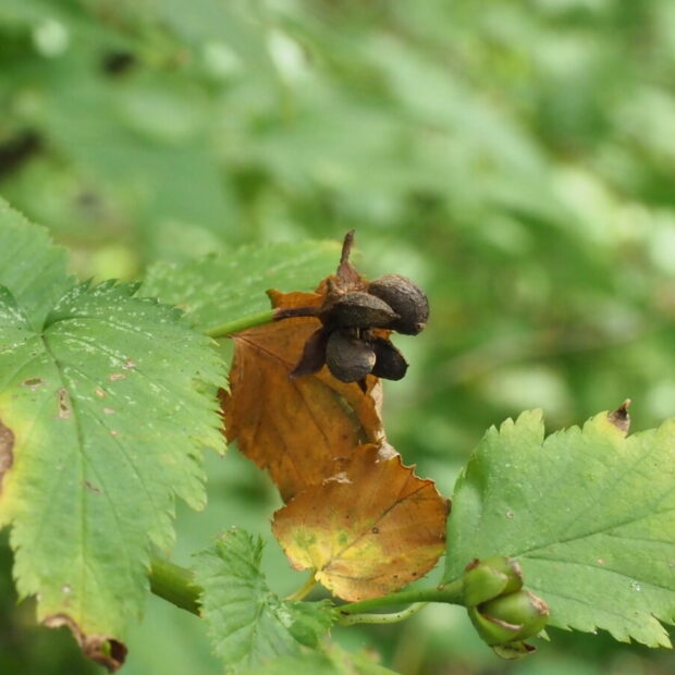 花が終わると5つの実がふくらんできて、 秋に暗褐色に熟します。