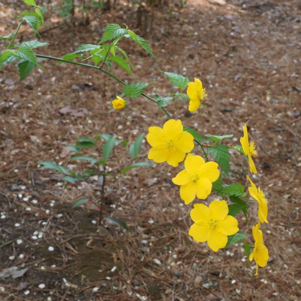 生命力が強く、 自然の森にもたくさん生えています。 春、 ヤマブキの花が谷川沿いの斜面を埋め尽くすように咲く風景は見ごたえがあります。