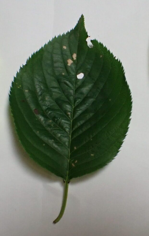 葉はウメの葉を丸くした感じで、 交互につきます。