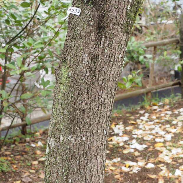 樹皮は縦にさけ、 浅い縦じまのようになります。