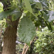 フチに大きなギザギザのある葉です。 春、 白銀色の新緑がきれいです。