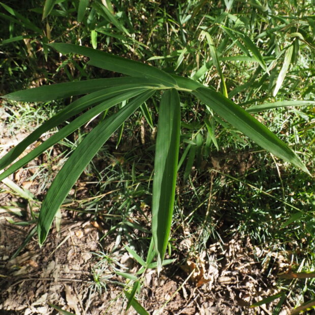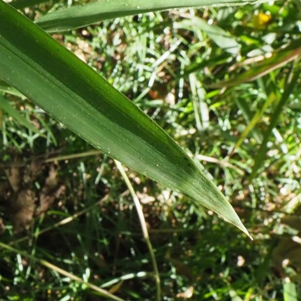 長さ15~25㎝の葉っぱで互生です。 メダケのように先端は垂れません。