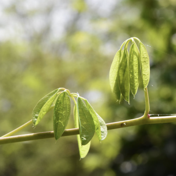 アケビと同じように、 枝や幹は無毛です。 茶色〜灰色のしなやかなつるです。