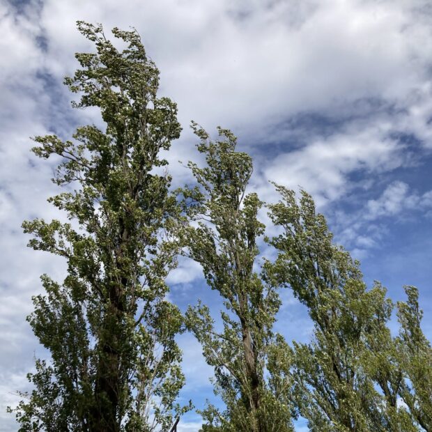 葉で風を受け流し、 さらさらと音をたて、 さわやかな雰囲気で立っているのだけれど、 強風でも大丈夫というわけではありません。 生命力は強くて成長は速いのですが、 材は柔らかくて弱いのです。 「あの公園に行けばポプラに会えるはず」と思って行ってみると、 もう倒れてしまった後で、 会えないことがあります。