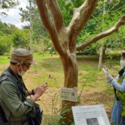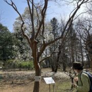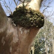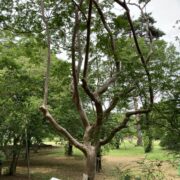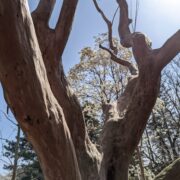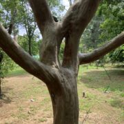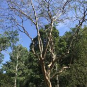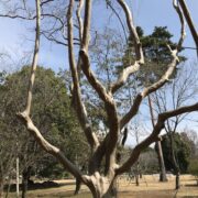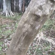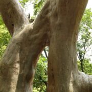 つるつるした面白い模様の樹皮です。 完全につるつるになる前はまだら模様です。
