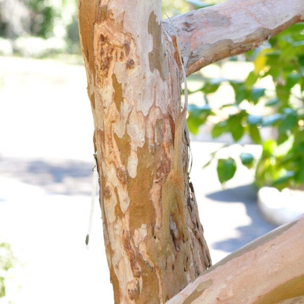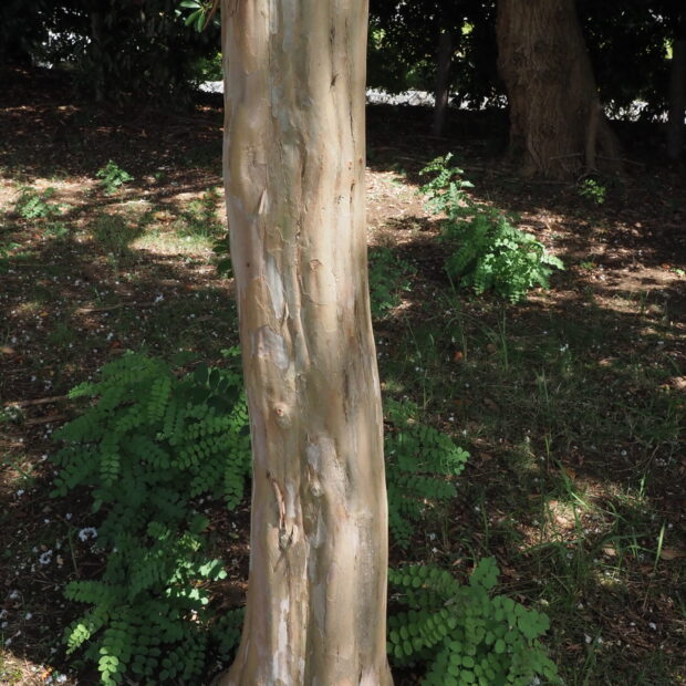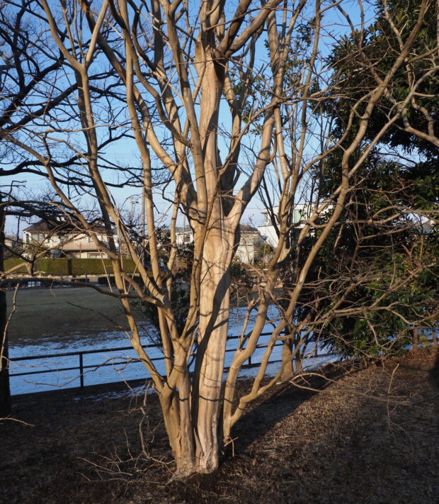 つるつるした面白い模様の樹皮です。 完全につるつるになる前はまだら模様です。