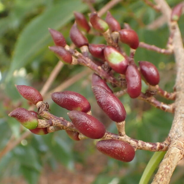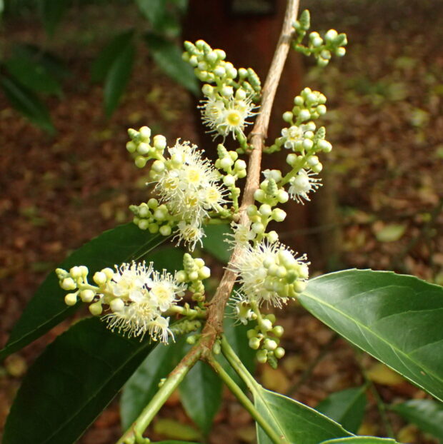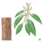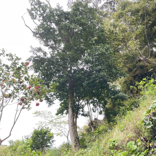 常緑で、 高さ10〜15mにもなる高木です。 幹の直径も1mくらいになるものもあります。