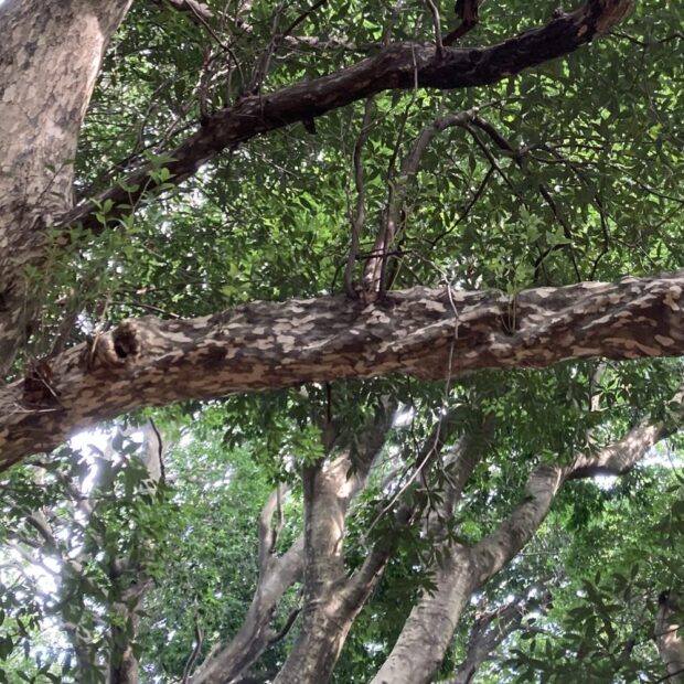 ところで、 シカは夏毛の鹿の子模様によって木々の間で敵から身を隠すようですが、 カゴノキの鹿の子模様の意味は???