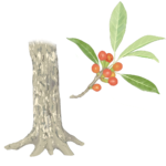温かい地域の低山で少し乾いた場所に生える木です。 たいていシイやカシと一緒に生えていますが、 乾いた山腹の斜面にまとまって生えていることもあります。