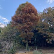 メタセコイアと似ていますが、 葉が交互につくので見分けられます。 秋には茶色く紅葉して落葉します。