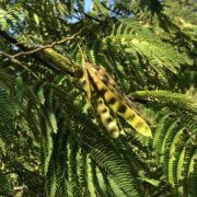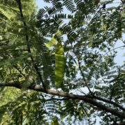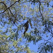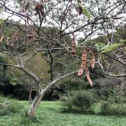 ネムノキは豆の仲間の木なので実は豆のさや型です。 葉が枯れた後もずっと木に残っています。