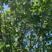 初夏にハンカチのような白い花をたくさん咲かせます。