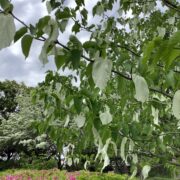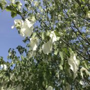 初夏にハンカチのような白い花をたくさん咲かせます。
