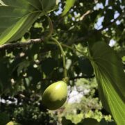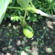 コロッとした実がぶら下がって実ります。 中の種は表面に溝がある面白い形をしています。
