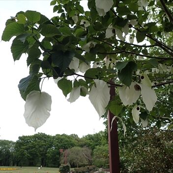白く大きな花びらが垂れ下がる様子が、 「ハンカチ」のようなので「ハンカチノキ」と呼ばれました。