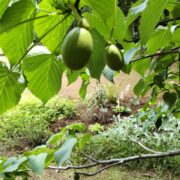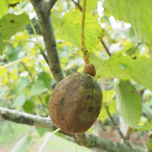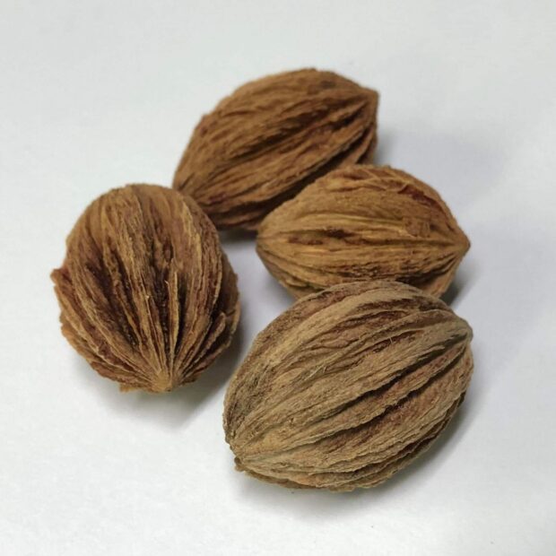 コロッとした実がぶら下がって実ります。 中の種は表面に溝がある面白い形をしています。