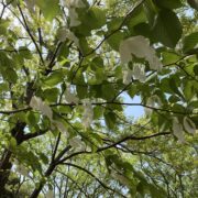 初夏にハンカチのような白い花をたくさん咲かせます。