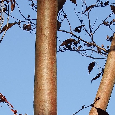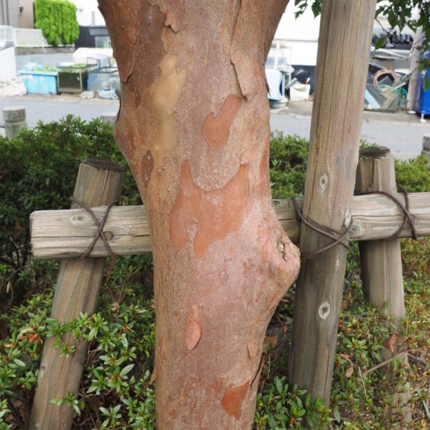 まだら模様の赤い幹がおしゃれです。