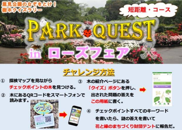 ガイドとスマホを使って、 公園内の木から出される問題に答えていきます。 問題に答えるとある謎のキーワードが!