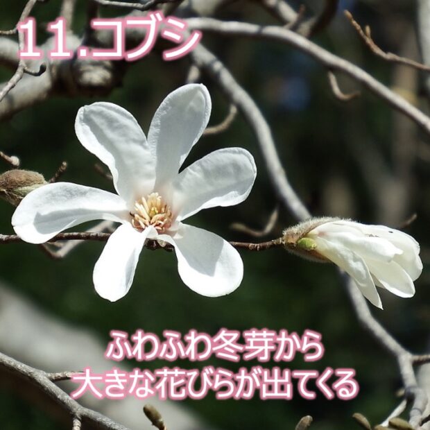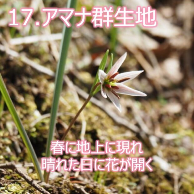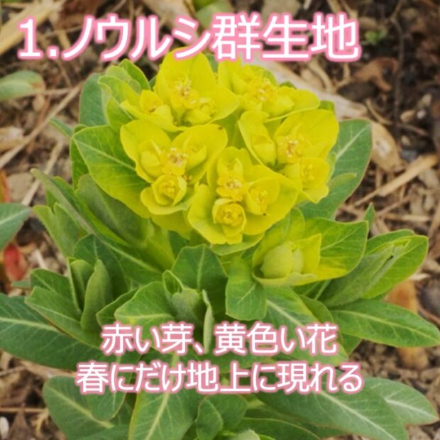 3月から5月頃までは、 いろいろな植物が芽吹き、 花をつける季節です。 ぜひ何度も散策して変化を楽しんでください。