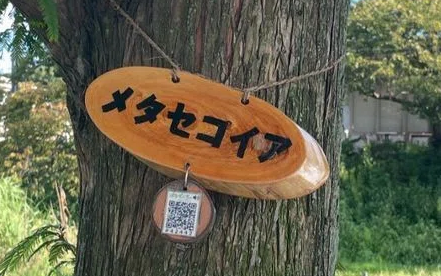 スマホで「はなもく散歩」樹名板のQRコードを読むだけで木の音声ガイドやクイズなどが楽しめます。