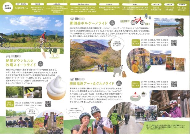 Eバイクツアーでは、 車では味わえない那須の雄大な景色、 味覚を楽しむことができます。