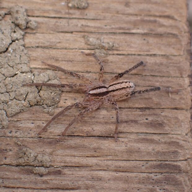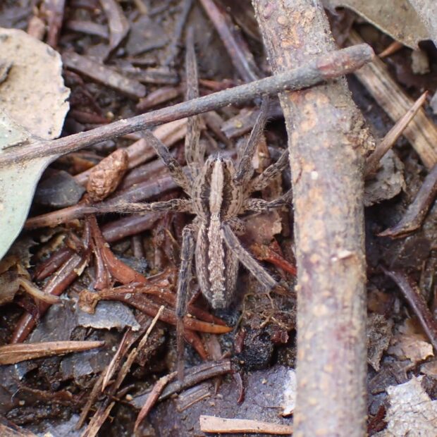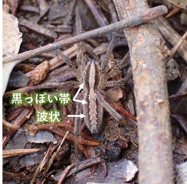 地表を歩くしぼり模様のクモ