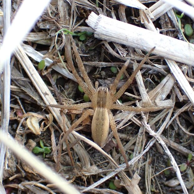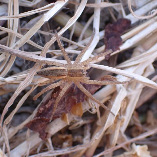 キシダグモ科ハシリグモの仲間。 平地~山地に生息し、 池、 川、 水田や周囲の湿地で見られます。 ハシリグモの仲間は似ている種類が多く、 識別には注意が必要。