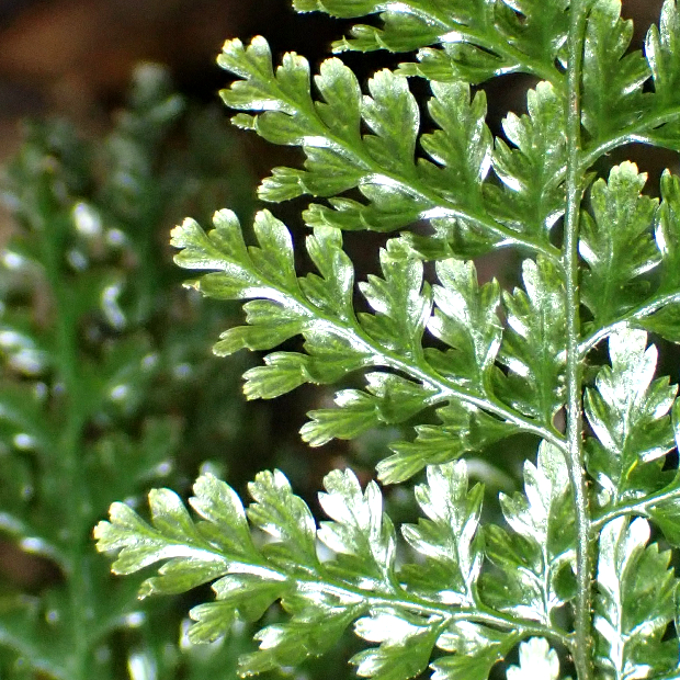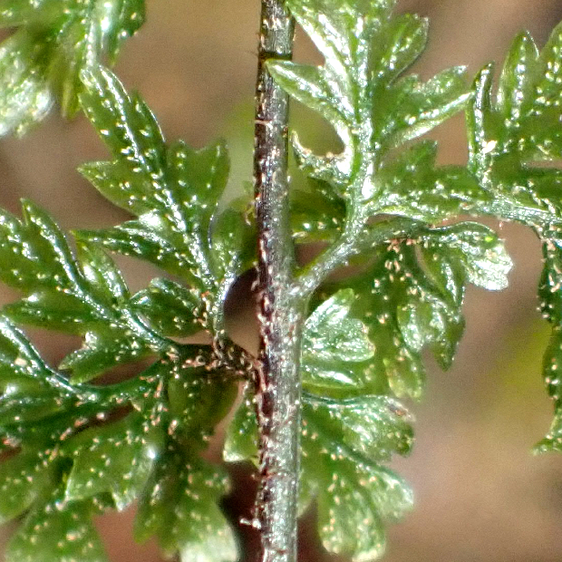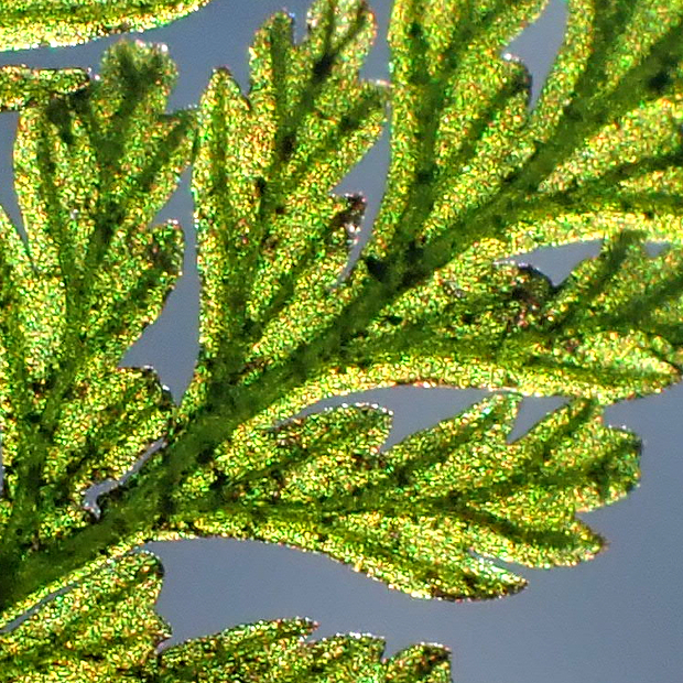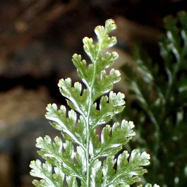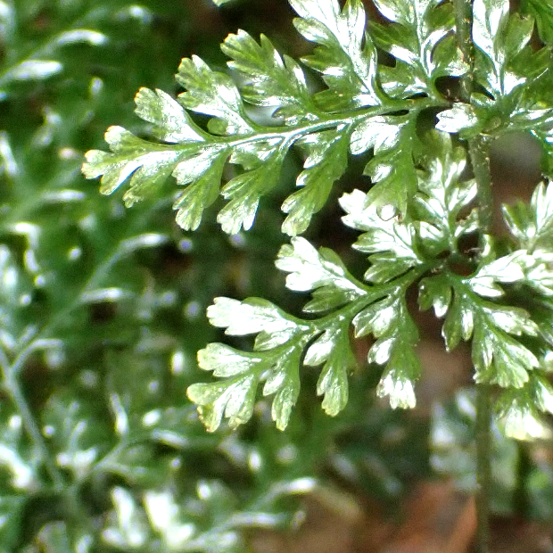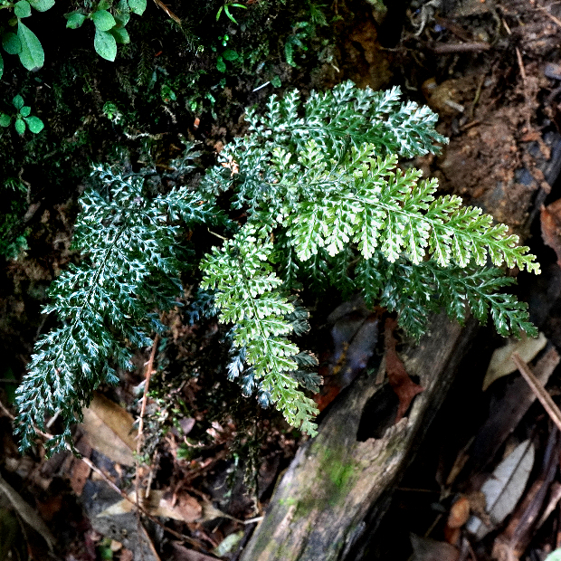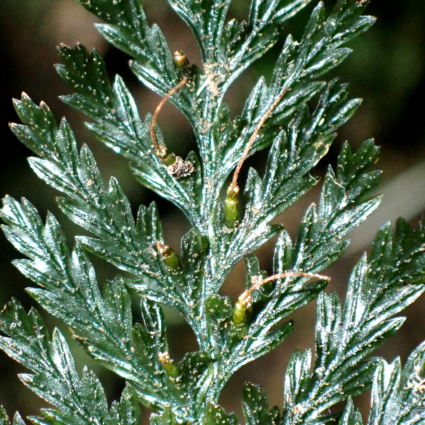亜熱帯域に広く分布するコケシノブ科のシダ。 葉は濃緑色で硬い質感があり、 やや波打ってテカテカしています。 包膜がコップ状なところはハイホラゴケ類に似ていますが、 根茎が短いので、 葉が密に出る感じになります。
