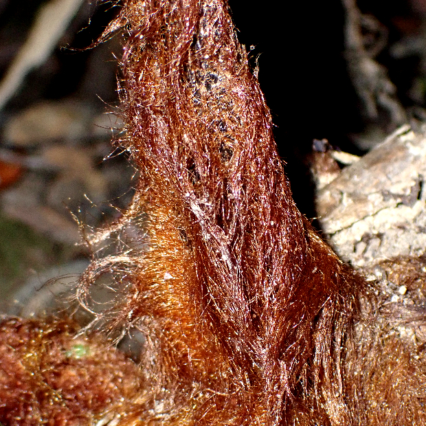 ただ、 日本に1種のみ自生するタカワラビは幹を作らず、 高く育ちません。 そのため、 あまり目立たない存在ですが、 二枚貝状の包膜、 毛のびっしりつく葉柄基部など面白い特徴をいくつか持ちます。 ですので沖縄の森を歩くときは、 ぜひ見つけて観察してみてください。